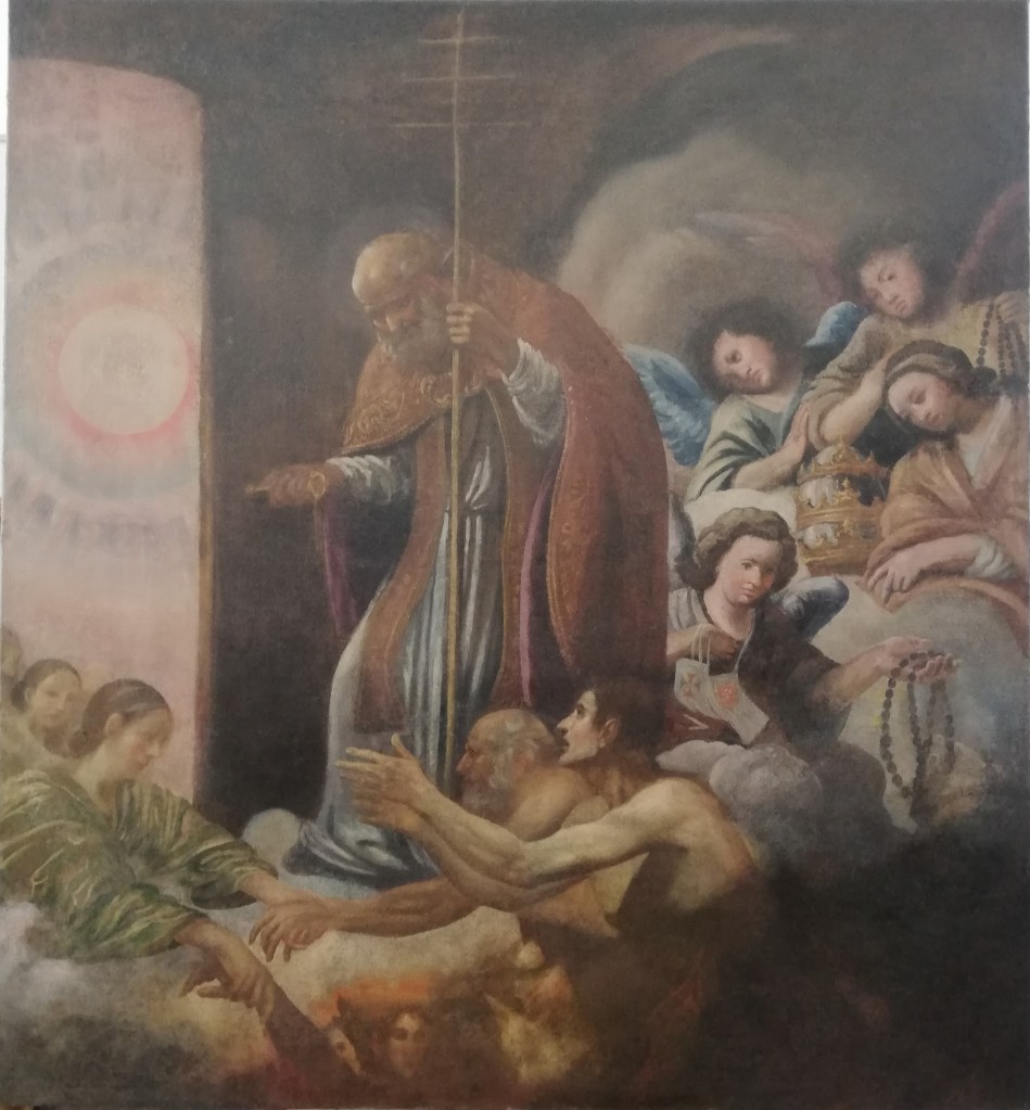 La visita de San Francisco de Paula a las ánimas del purgatorio, atribuido a Agustín del Castillo, 1620. Óleo sobre lienzo.